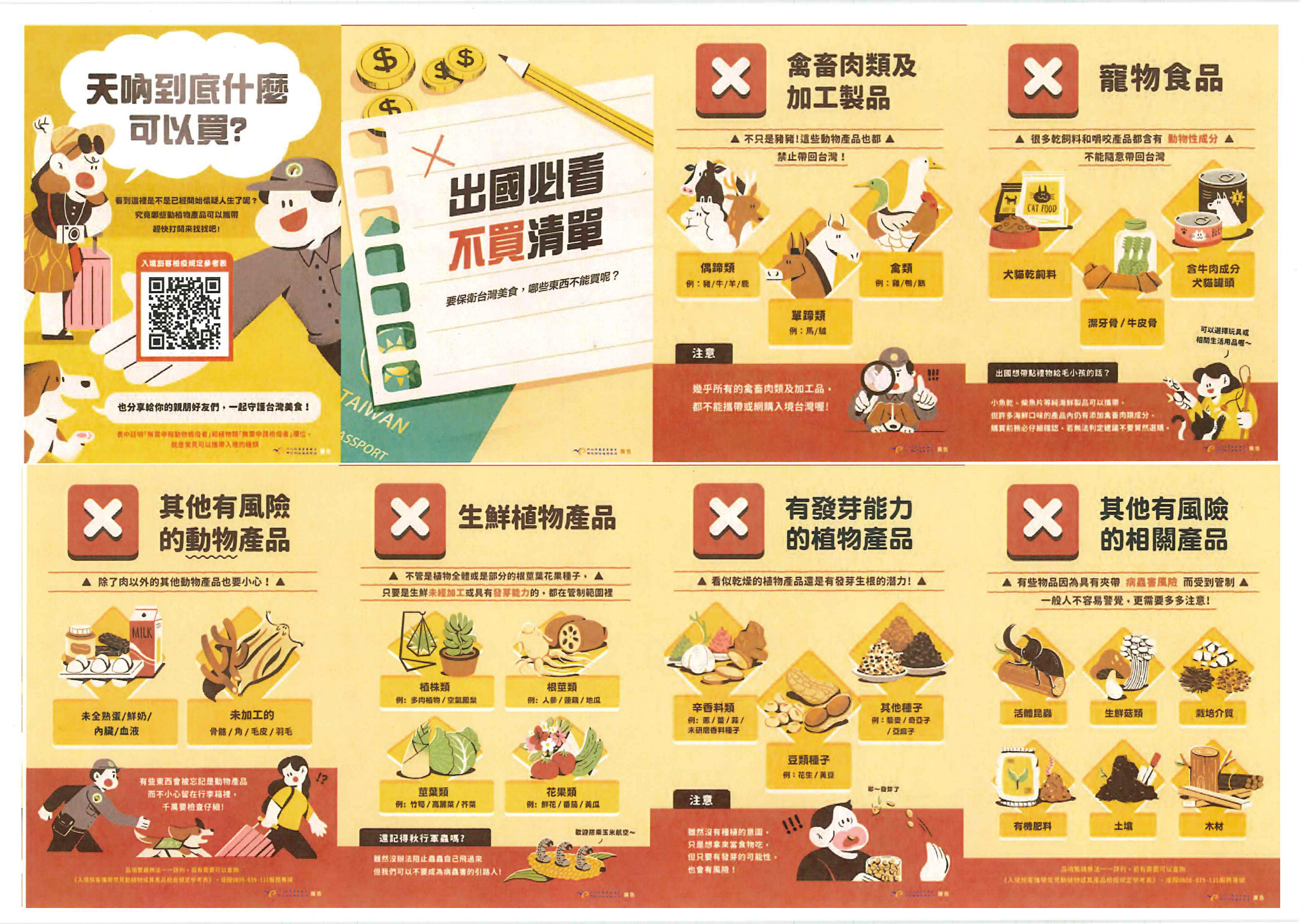 因鄰近亞洲地區非洲豬瘟疫情延燒,為防堵非洲豬瘟疫情入侵及強化國人防疫意識,行政院農業委員會依據「常見入境旅客攜帶動植物或其產品檢疫規定參考表」,提醒國人--出國必看不買清單: