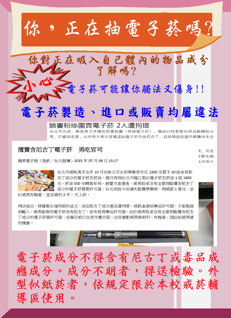 電子煙製造、進口或販賣均屬違法!